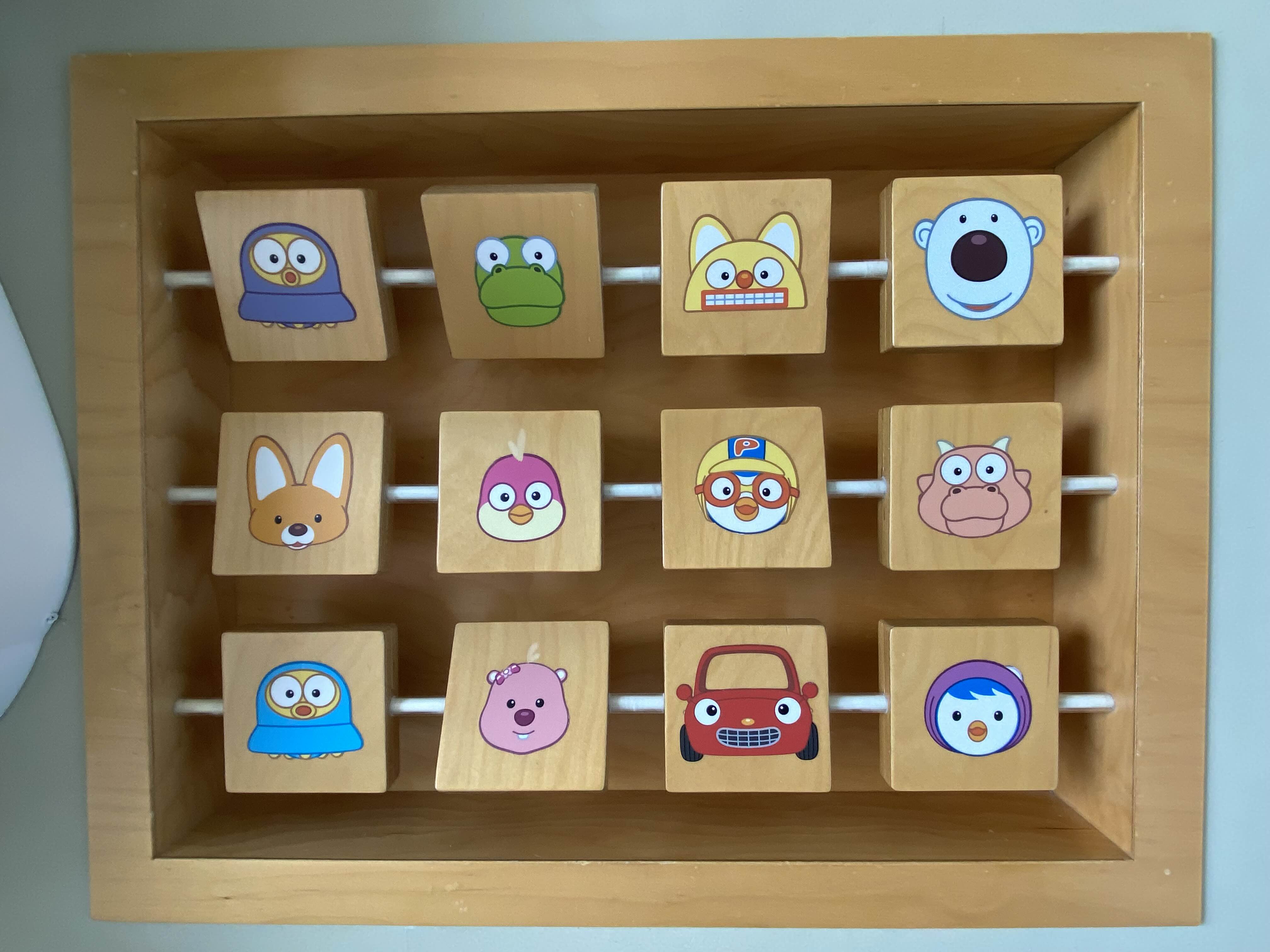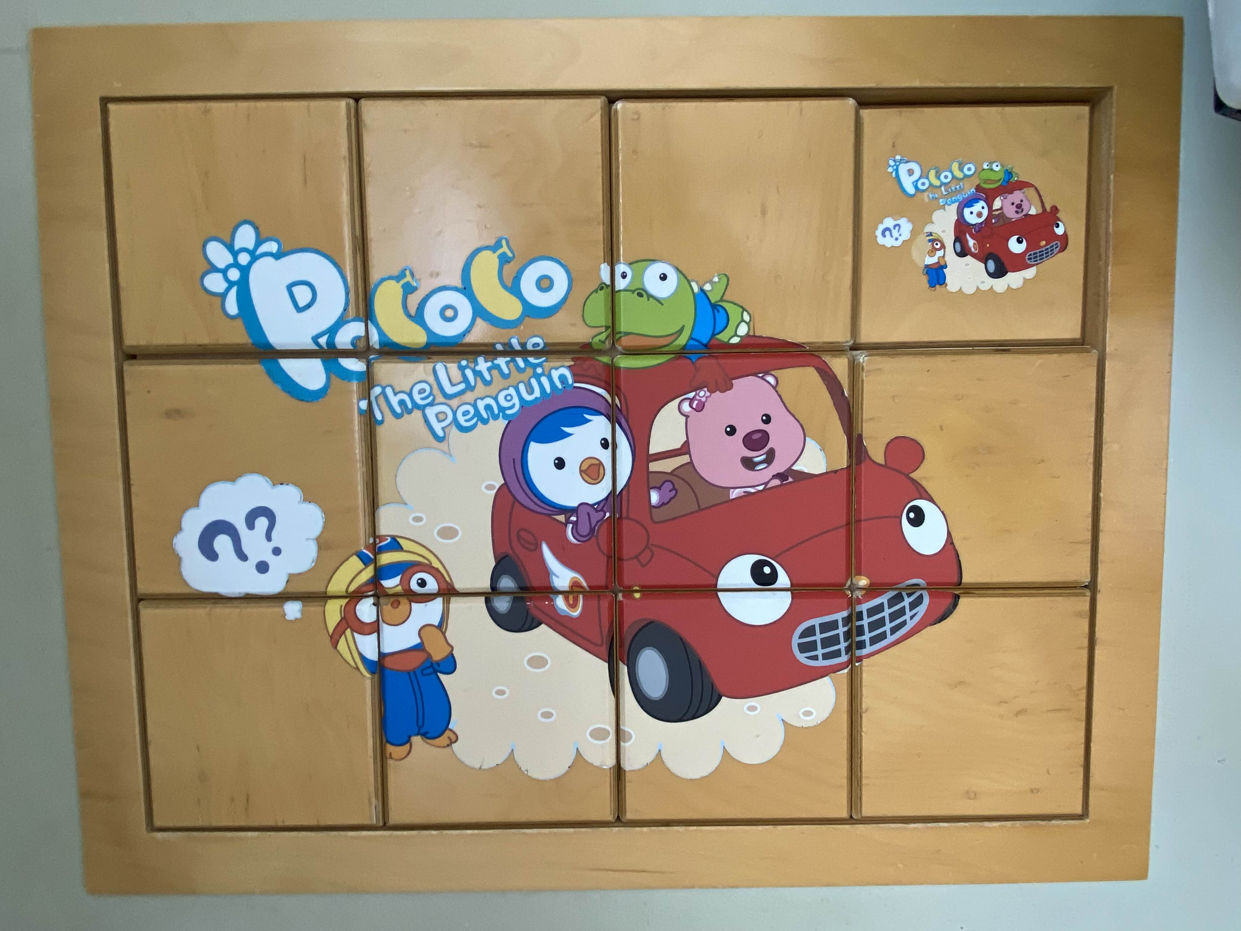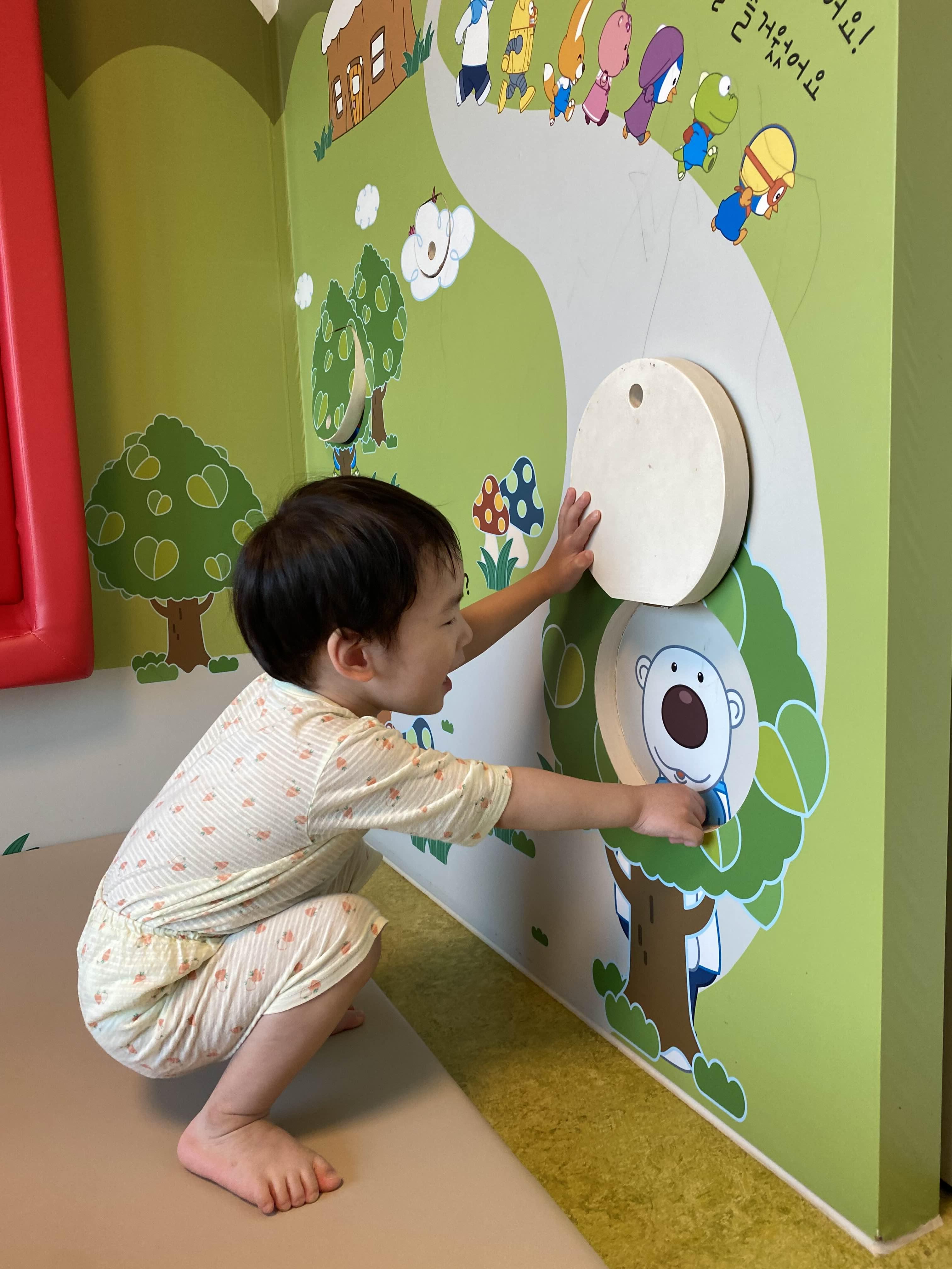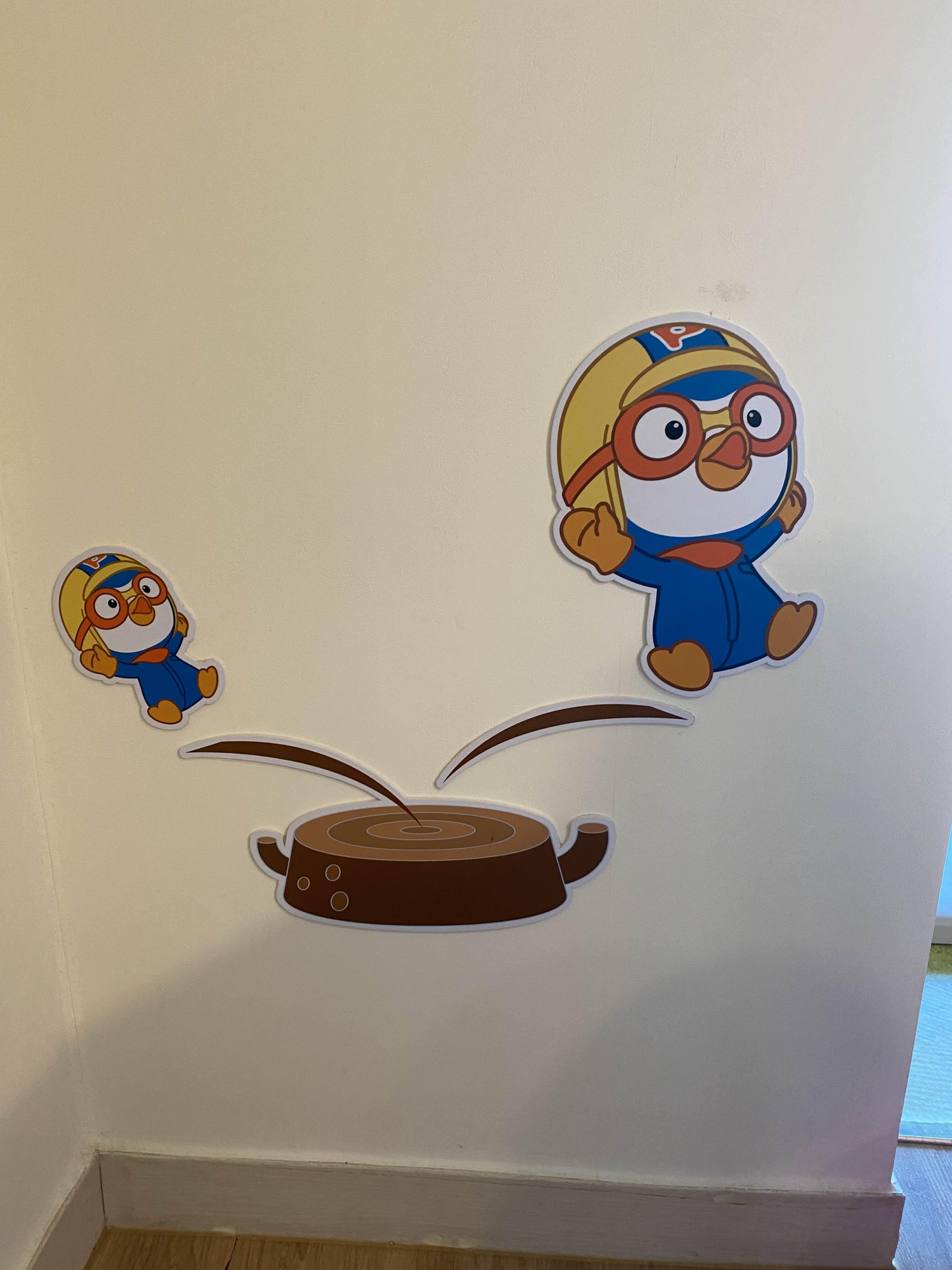 뽀로로 MAKE 객실의 거실 한쪽 면에는 뽀로로 케릭터 퍼즐이 설치되어 있어 아이가 소소하게 가지고 놀기 좋았습니다.