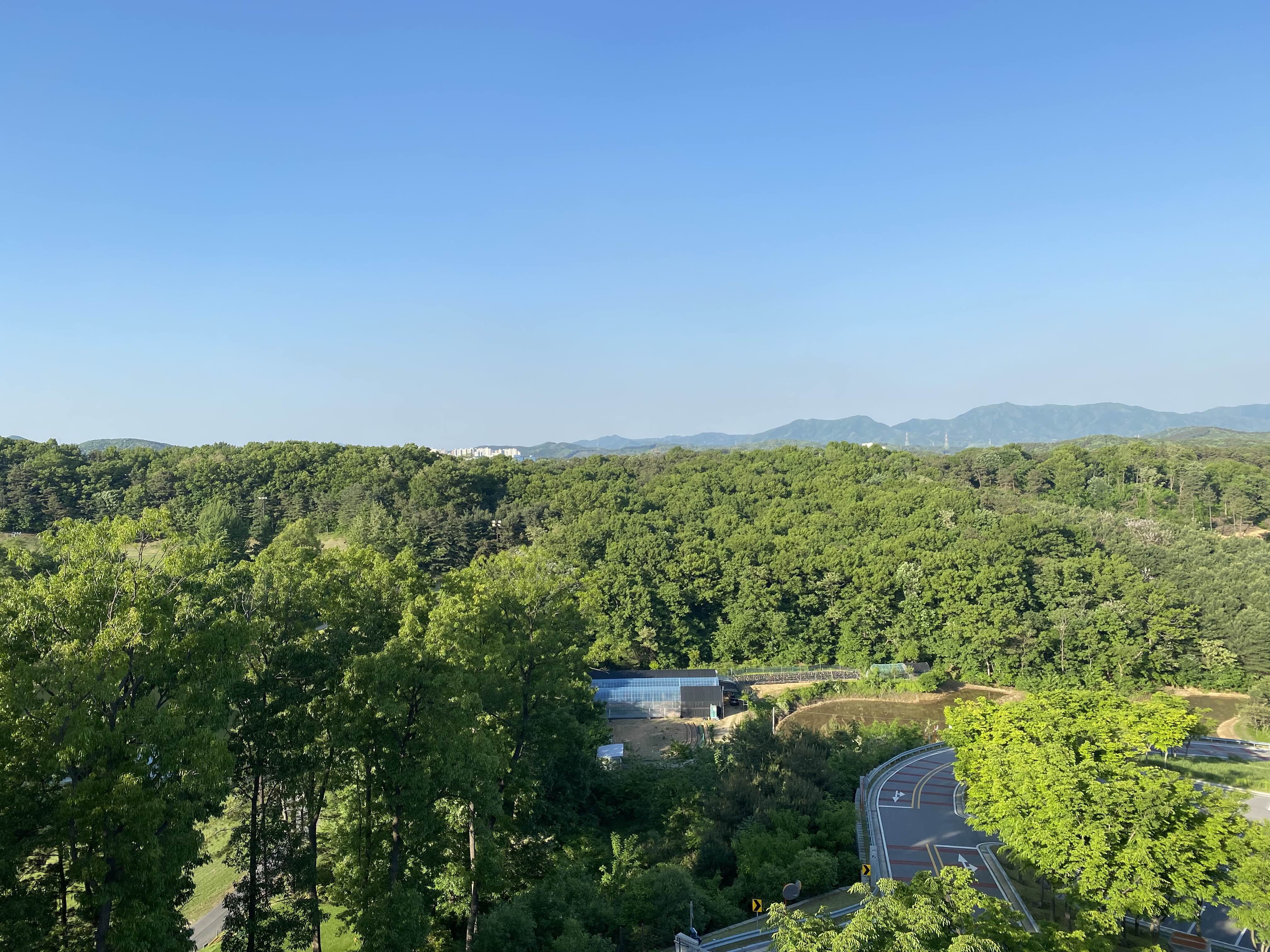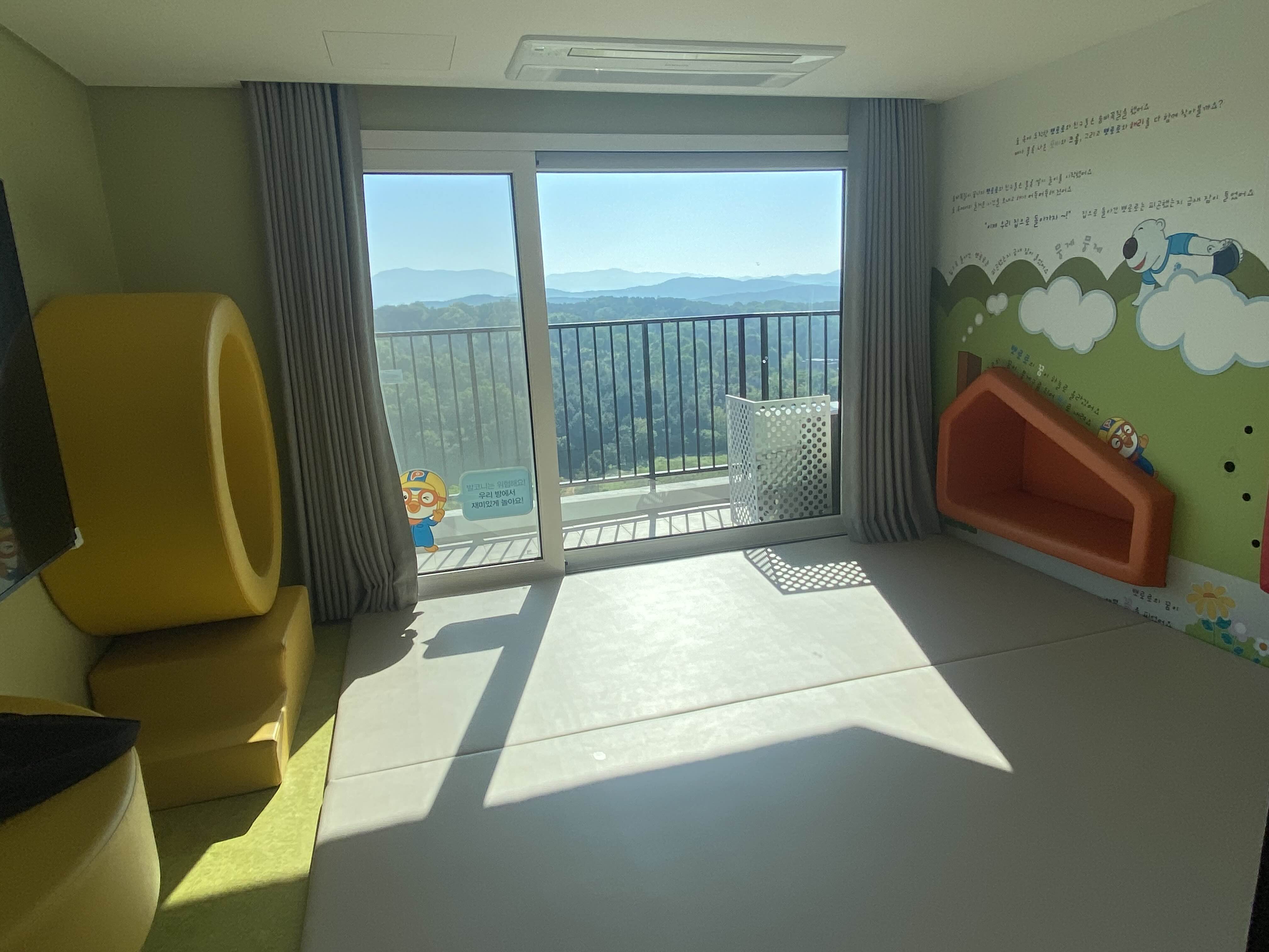 뽀로로 READ 객실 테라스에서도 나무가 울창한 산과 파란 하늘을 볼 수 있어 좋았습니다.
