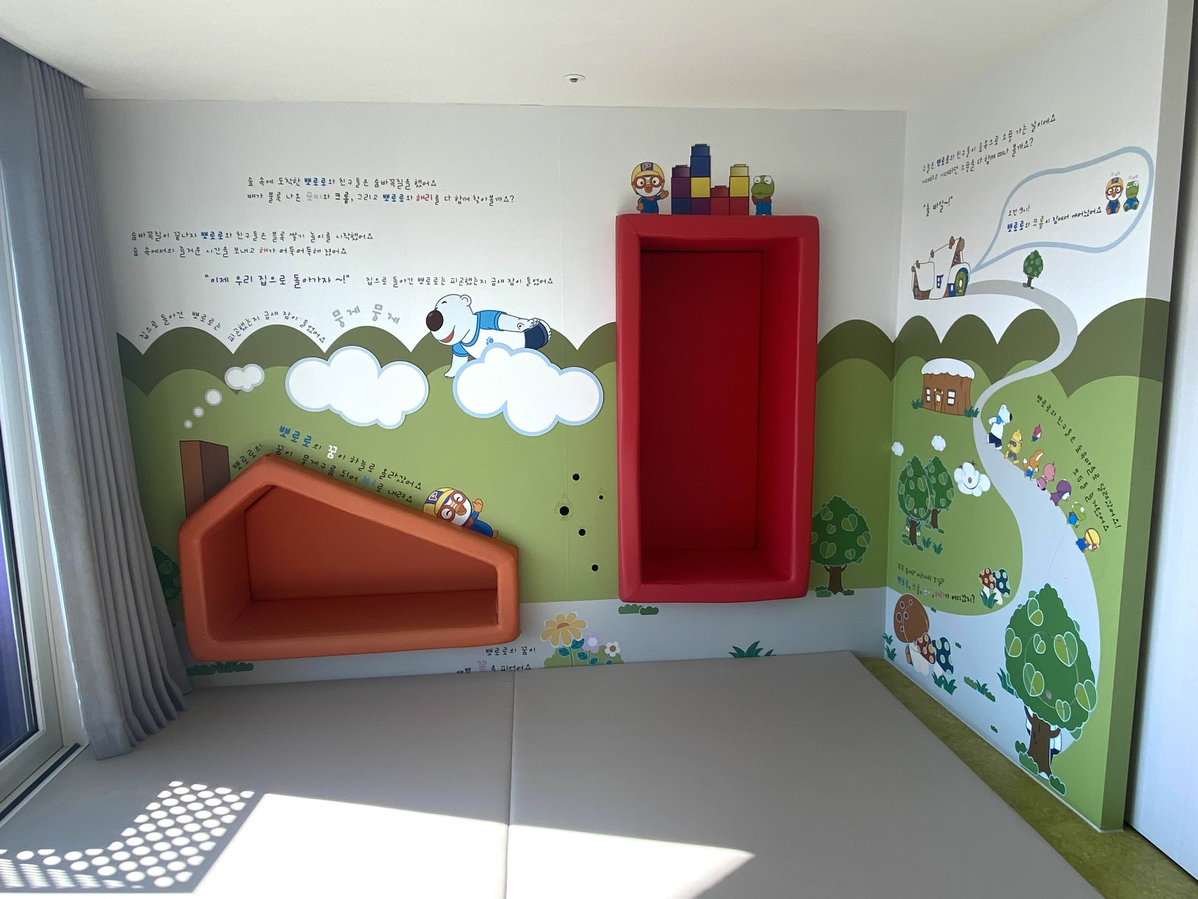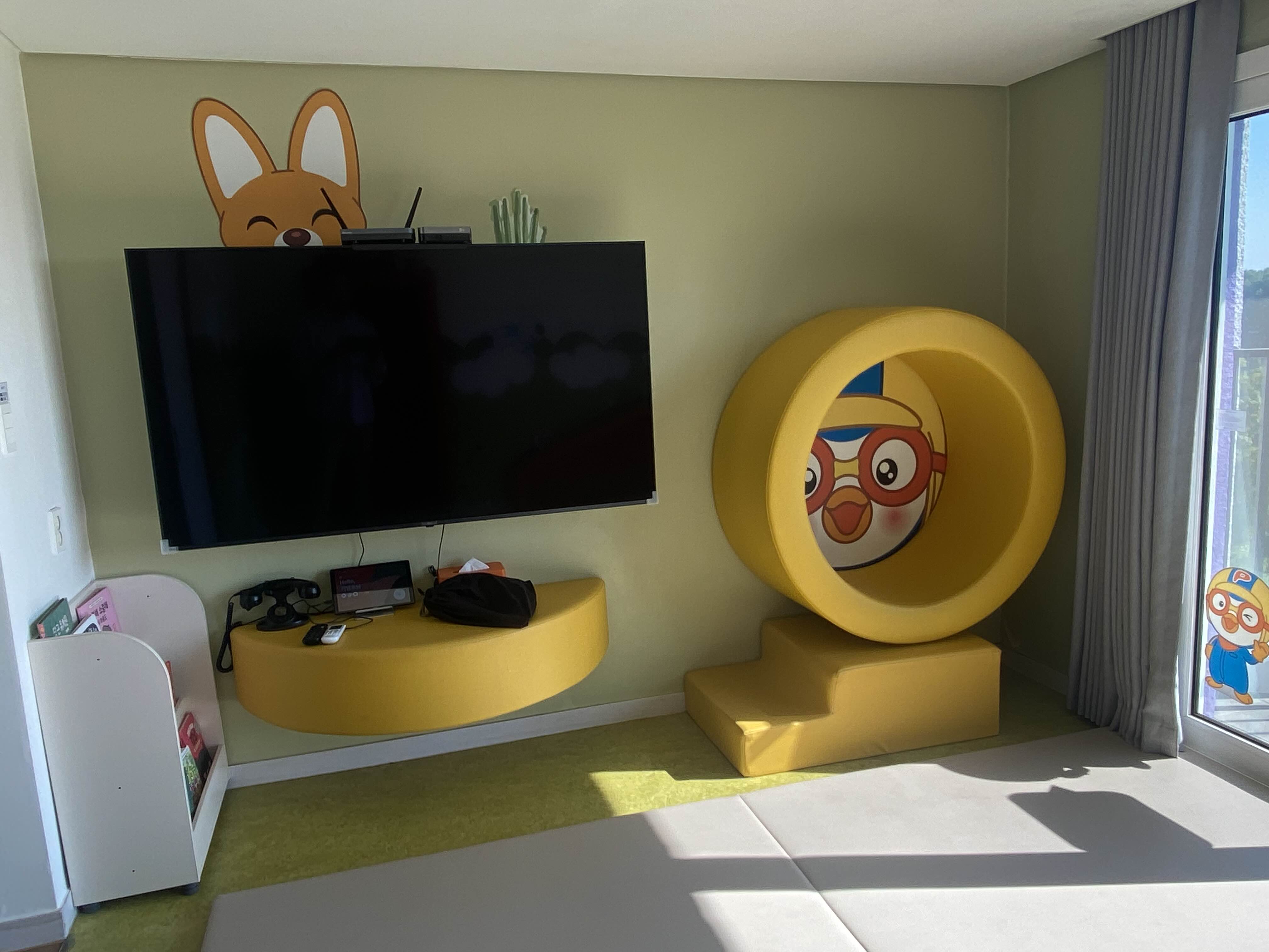 뽀로로 READ 객실의 거실에도 여러 형태로 뽀로로 캐릭터가 설치되어 있어 그 구성에 맞춰 다양한 놀이를 할 수 있었습니다.