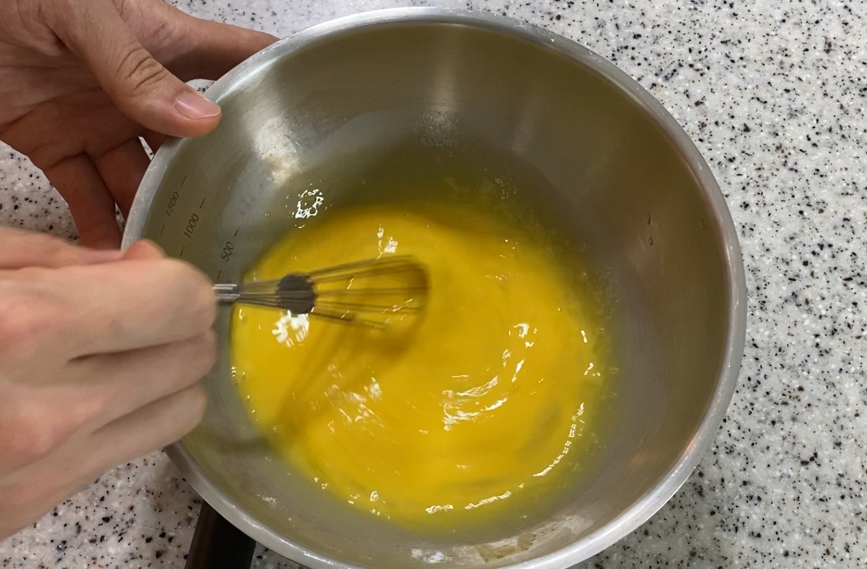 도구를 이용해 계란 노른자를 최대한 부드럽게 풀어줍니다.