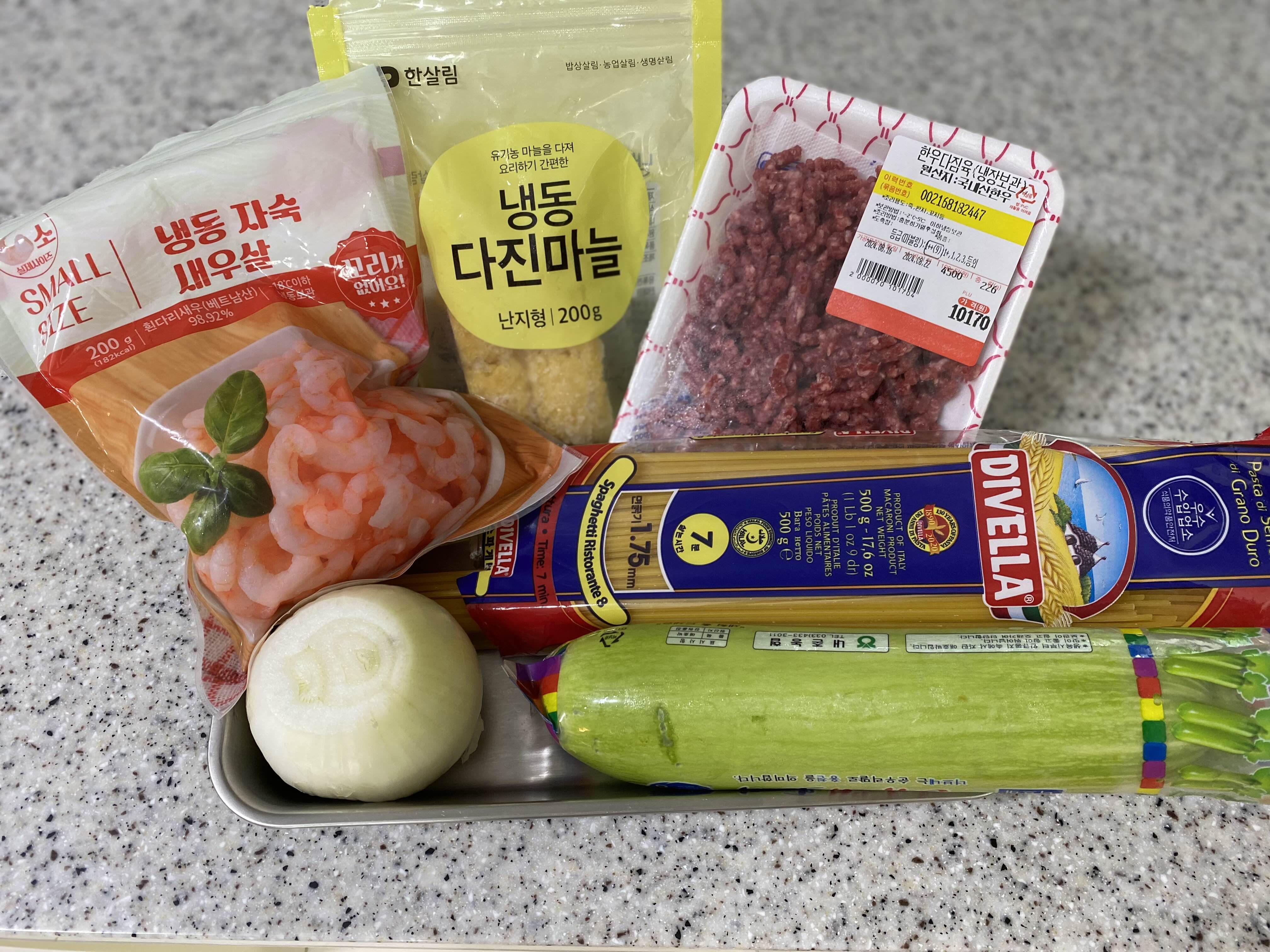 이번 토마토 파스타에는 충분한 단백질 섭취를 위해 다진 소고기와 새우살도 넣어, 고기를 좋아하는 아이들에게도 인기 만점 토마토 파스타입니다.^^