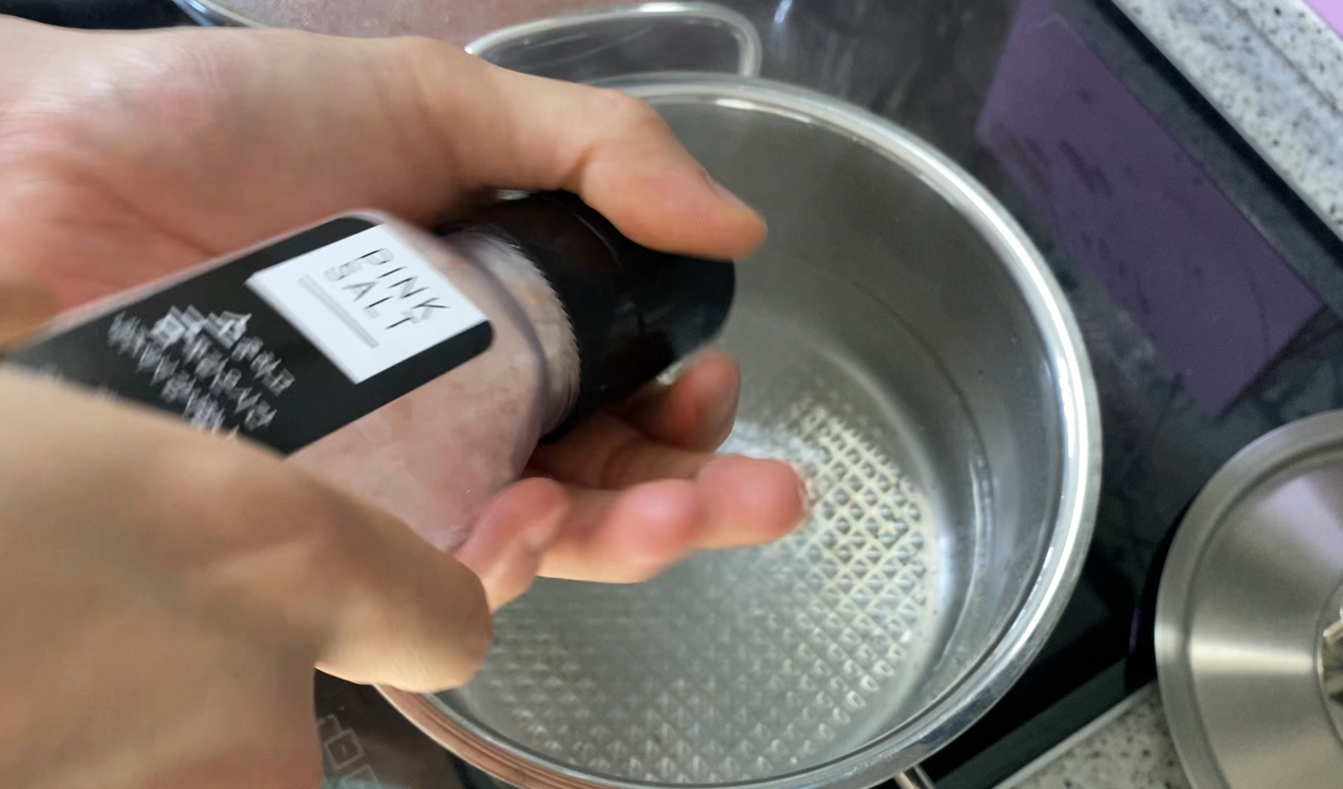 냄비에 물을 넣고 끓으면 소금을 넉넉히 뿌린 후 면을 넣고 삶습니다.