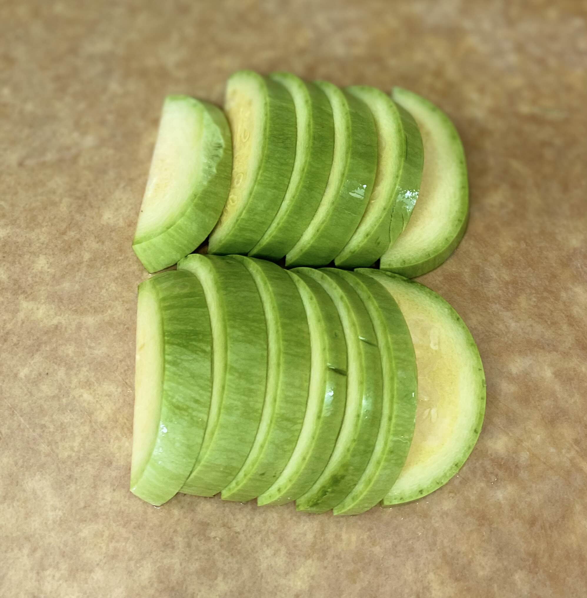 이번 파스타에 들어가는 야채 재료로 양파와 애호박을 사용하였습니다. 양파와 애호박을 먹기 적당한 크기로 손질합니다.