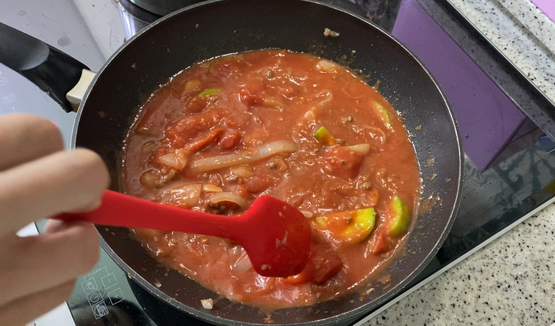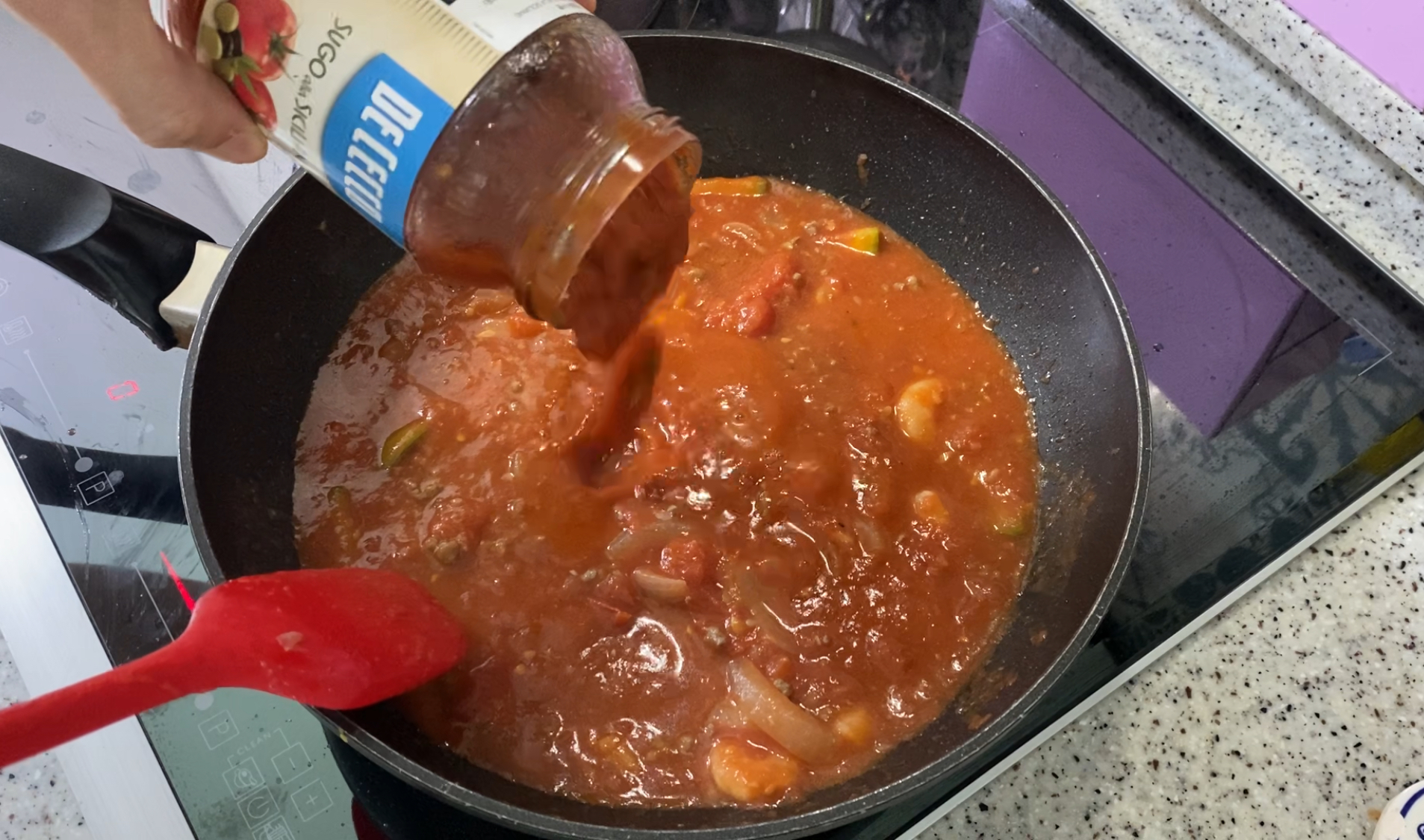 여러 재료가 골고루 들어가 맛있는 토마토 소스가 완성되었습니다.