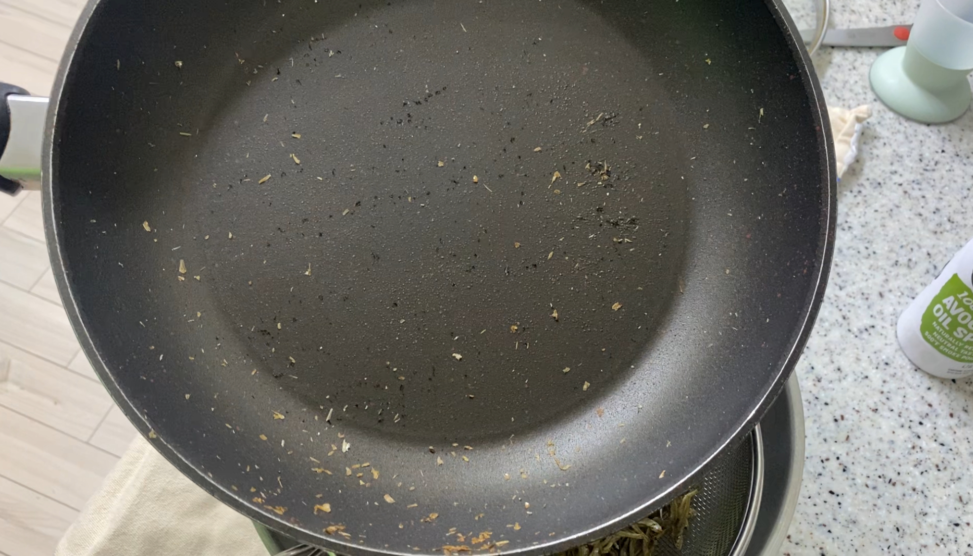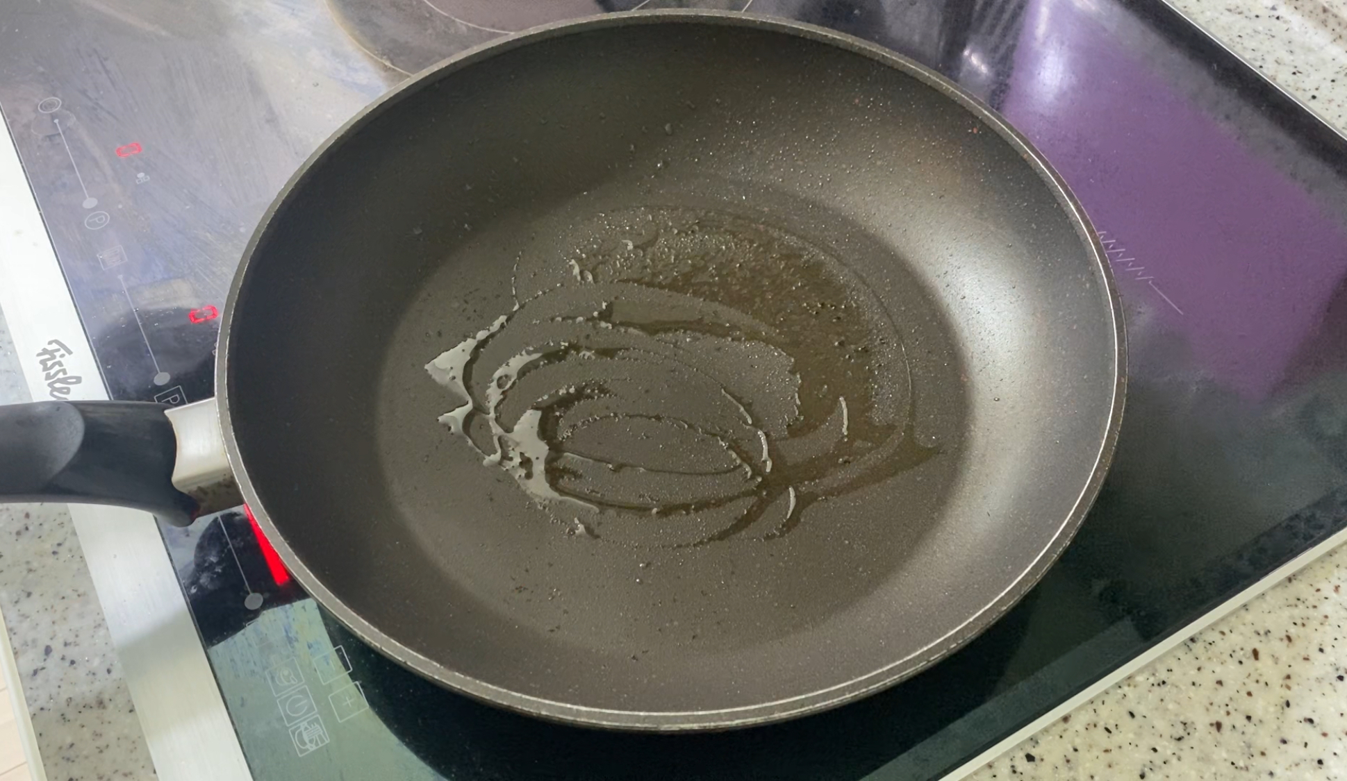 달궈진 프라이팬에 아보카드유(또는 현미유)를 두릅니다. 기름을 두르지 않고 해도 크게 상관은 없지만, 아보카드유(또는 현미유)를 둘러주면 맛과 향이 좀 더 좋습니다.