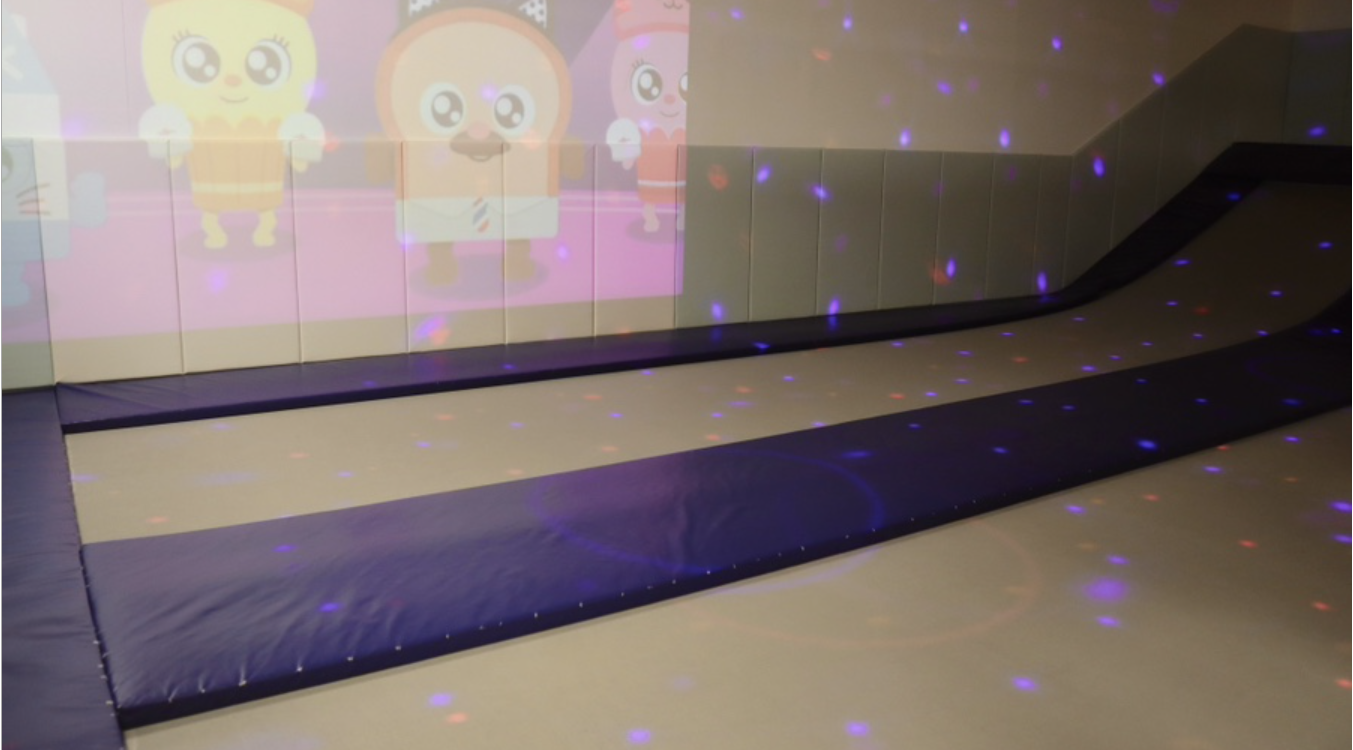 저희 아이가 평소 몸 쓰는 놀이를 좋아해서 그런지 트램펄린장을 특히 좋아했는데, 저 역시 어린 시절 텀블링장에서 놀았던 기억이 새록새록 나면서 아이와 같이 몸 쓰면서 재밌게 놀았습니다. 넓은 트램펄린장에서 빔으로 벽에 빛과 영상을 쏴주니 아이가 더 신나했습니다.